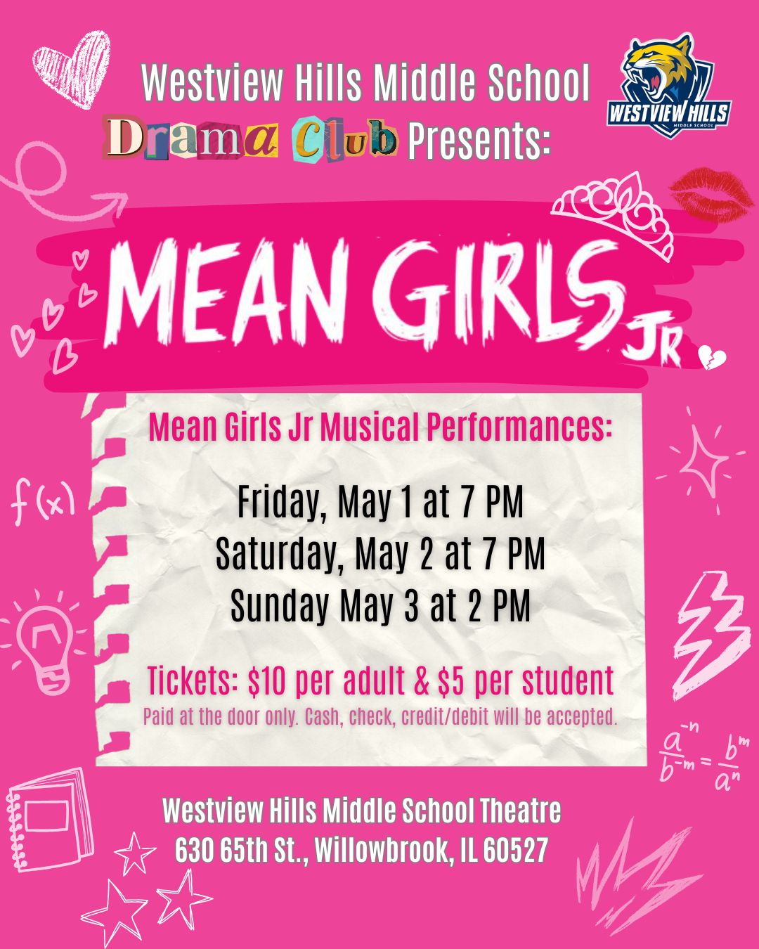 Don't miss the upcoming performances of Mean Girls Jr. put on by the amazing Westview Hills Middle School Drama Club.