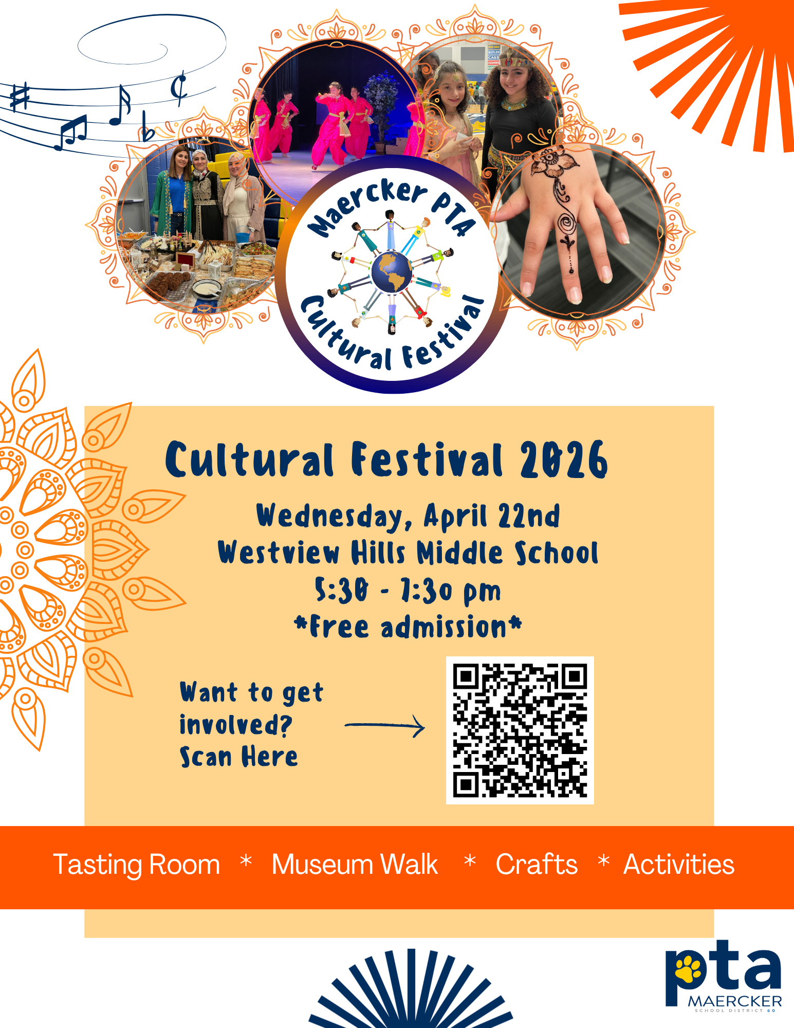 First up is the Cultural Festival 2026 which will take place on Wednesday, April 22 from 5:30-7:30 p.m. at Westview Hills Middle School.