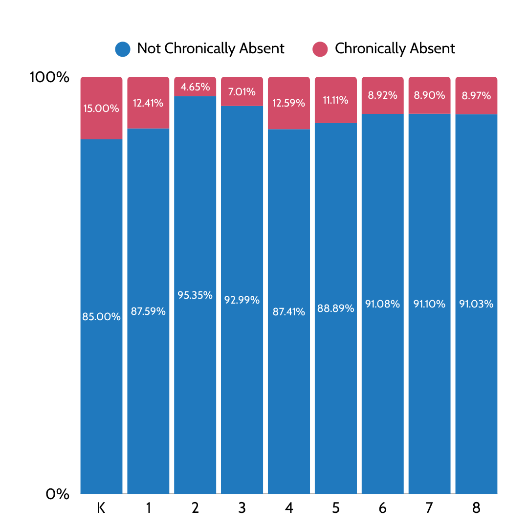 While we continue to make strides from prior years, one important area that continues to challenge us is daily attendance. Chronic absenteeism - missing 10% or more of school days, even for excused reasons - places students at serious risk of falling behind. Research shows that by third grade, students who are chronically absent often struggle with reading and math achievement. |